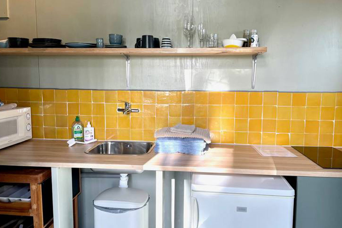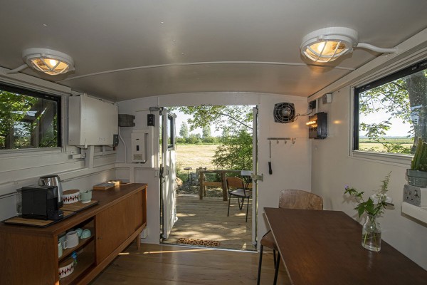 Ondanks het kleine formaat van de truck, hoef je niet aan comfort in te leveren. De truck beschikt over een fijn tweepersoonsbed, een nespresso apparaat, waterkoker en 2-pits inductiekookplaat. Vlakbij de truck vind je je privé-sanitair met douche en toilet. De truck heeft een terras waar je mooi uitzicht hebt over de naastgelegen velden.