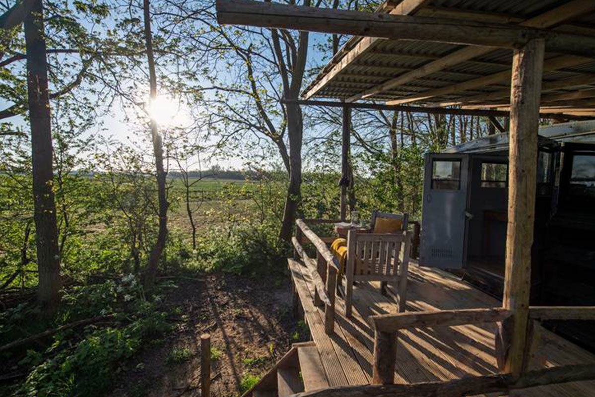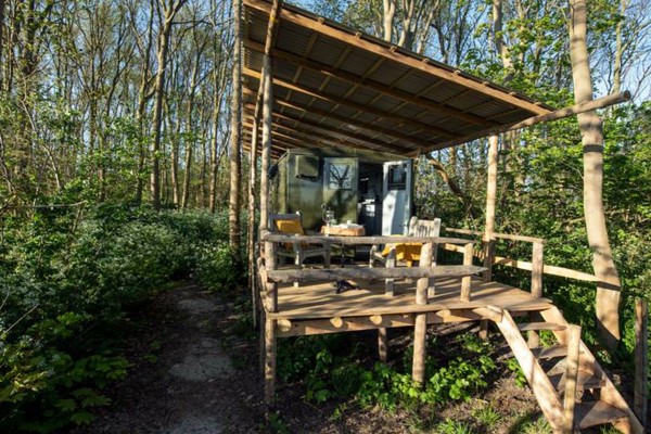 Wil je een keertje bijzonder overnachten? Dan is deze ‘Bedfordtruck’ de plek voor een unieke ervaring. Dit omgebouwde Engelse legervoertuig gaat nu door als luxe kampeergelegenheid. Je ontwaakt ‘s ochtends met het gezang van de vogels en je staat in direct contact met de natuur.