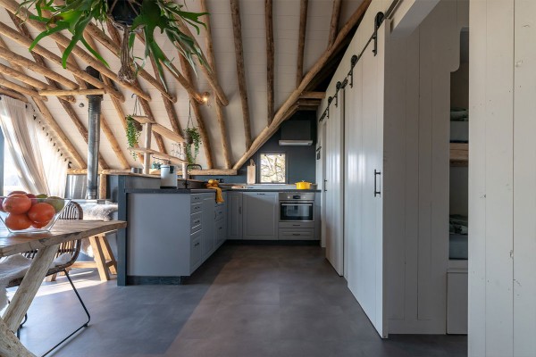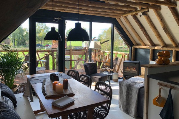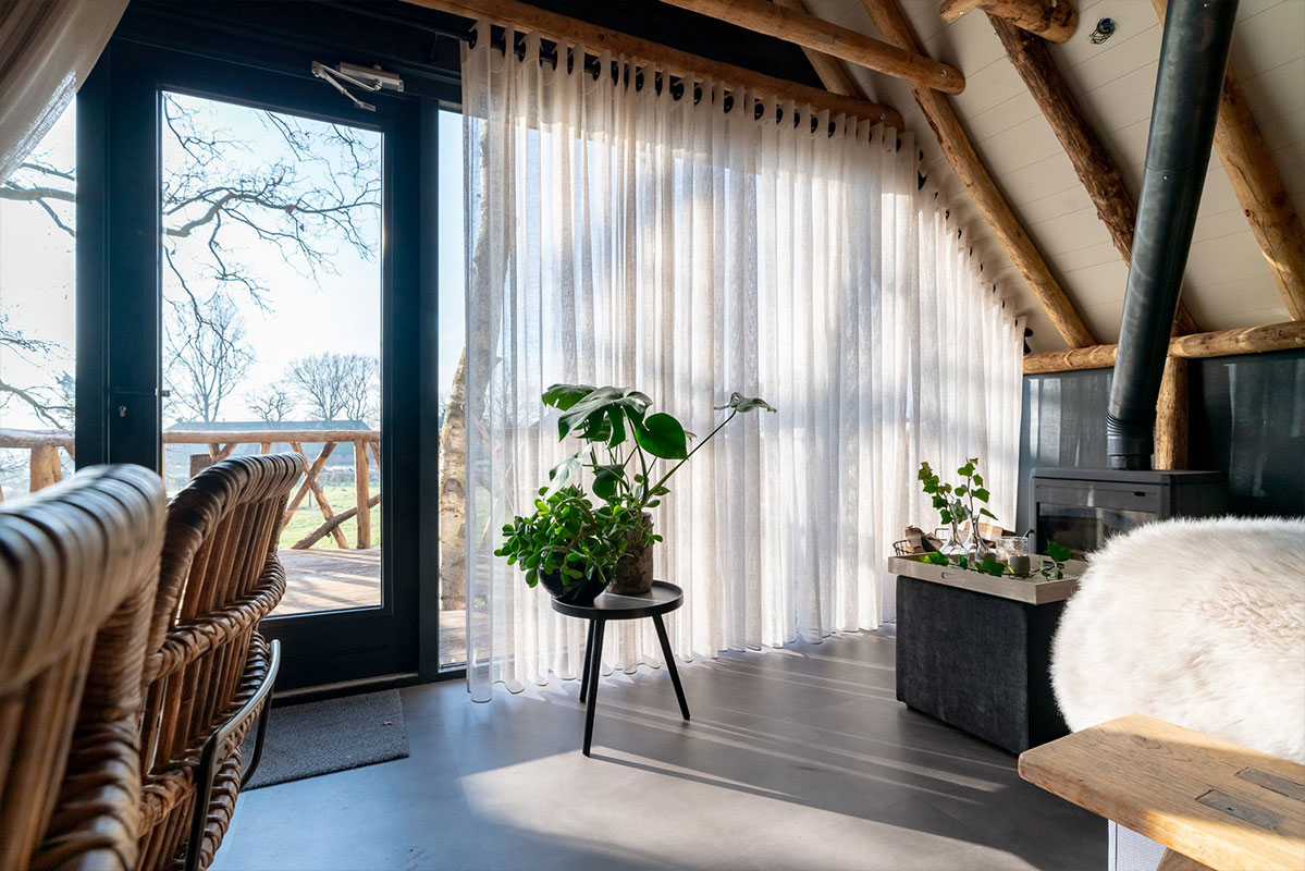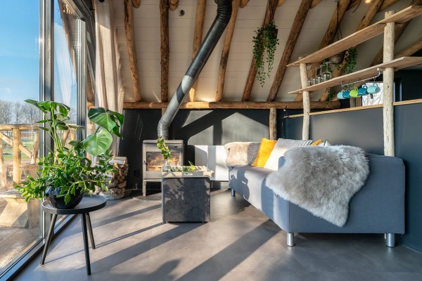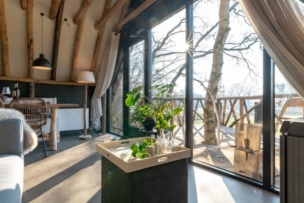 Is het mogelijk om een plek te creëren waar het huisje een avontuur op zichzelf is? Deze boomhut is het bewijs dat dit kan. Zonder in te leveren op comfort, is een verblijf op deze plek een hele bijzondere ervaring. Alles in deze boomhut is met zorg en aandacht ontworpen en gebouwd. Vanuit het huis en vanaf het terras heb je mooi uitzicht op de zonsondergang en vanuit jouw bed kan je door het unieke glazen dak van de sterrenhemel genieten. Geniet ‘s avond heerlijk van de warmte van de op hout gestookte kachel.